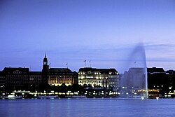 [ändere | Quälltäxt bearbeite]Hamburg liggt aan de Elbe, do wo d Bille und d Alster in d Unterelbe mündet. D Elbbrücke im Oschte und de Alte und de Neue Elbtunnel verbindet d Schtadtteile im Norde und im Süde vu de Elbe. In de Innestadt gitts die aufgstaute Außen- und Binnenalster. Entlang vu de Elbe isches uffgschwemmte Marschgbiet und es ibrigge Gbiet liggt uffem höher gleggenen Geeschtrücke.