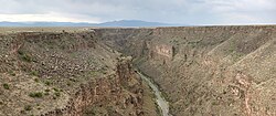 [modifica]Les conques sedimentàries que formen la moderna vall del Rio Grande no es van integrar en un sol sistema fluvial que desguassava al golf de Mèxic fins a un temps geològic relativament recent. En canvi, les conques formades per l'obertura del rift del Rio Grande eren inicialment bolsons, sense drenatge extern i amb una platja central.[14] Fa 13 milions d'anys existia un riu axial a la conca d'Española, que va arribar a la conca de Santo Domingo fa 6,9 milions d'anys. No obstant això, en aquesta època, el riu es va drenar a una platja al sud de la conca d'Albuquerque on va dipositar la Formació Popososa.[15] El curs superior d'aquest riu corresponia al modern Rio Chama, però fa 5 milions d'anys, un ancestral Rio Grande que drenava les muntanyes orientals de San Juan s'havia unit a l'ancestral Rio Chama.[14]