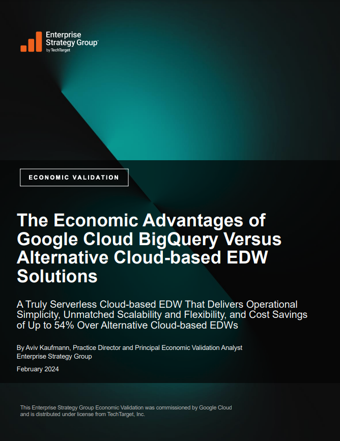 Enterprise Strategy Group (ESG), which examined the economic value propositions of Google Cloud BigQuery and alternative data solutions, reports that BigQuery enables organizations to:
