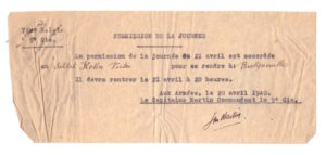 Victor Kohn, permission – 21 avril 1940 – archives familiales