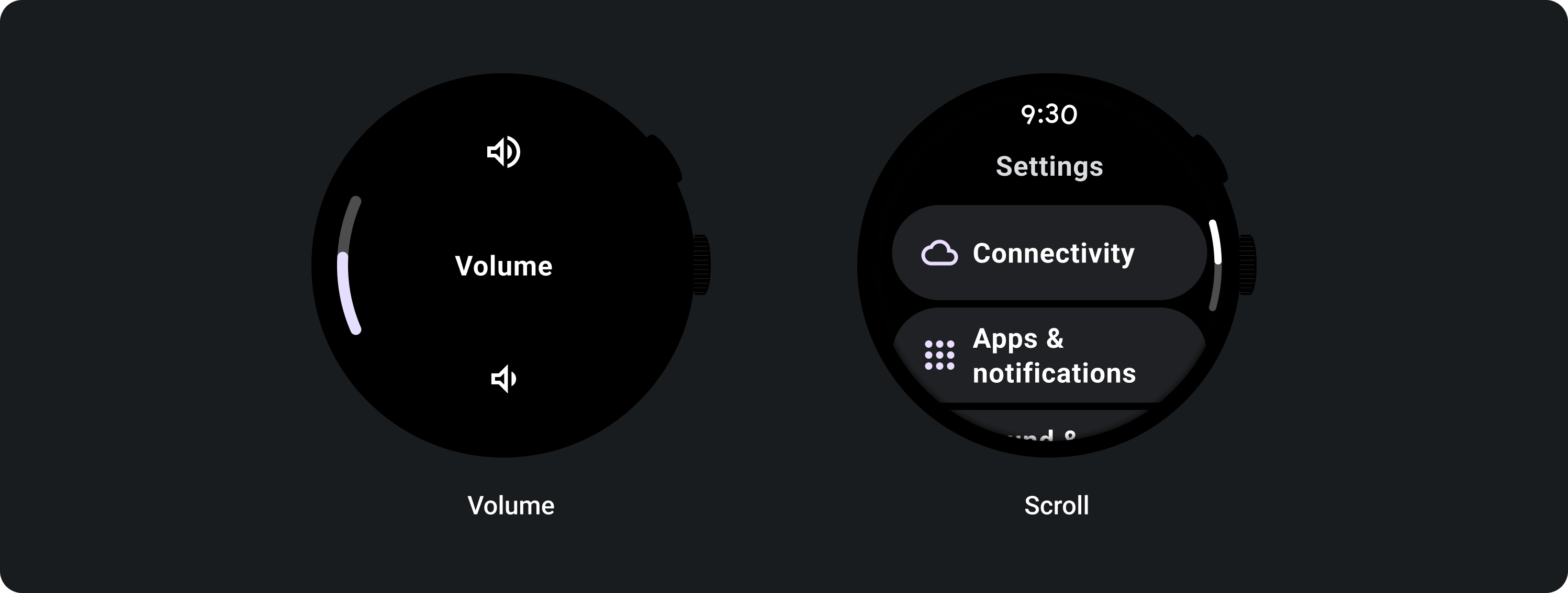 Use position indicators in list or for other contexts when you can use the rotating side button (RSB) to scroll, adjust settings, control volume, or do other actions.