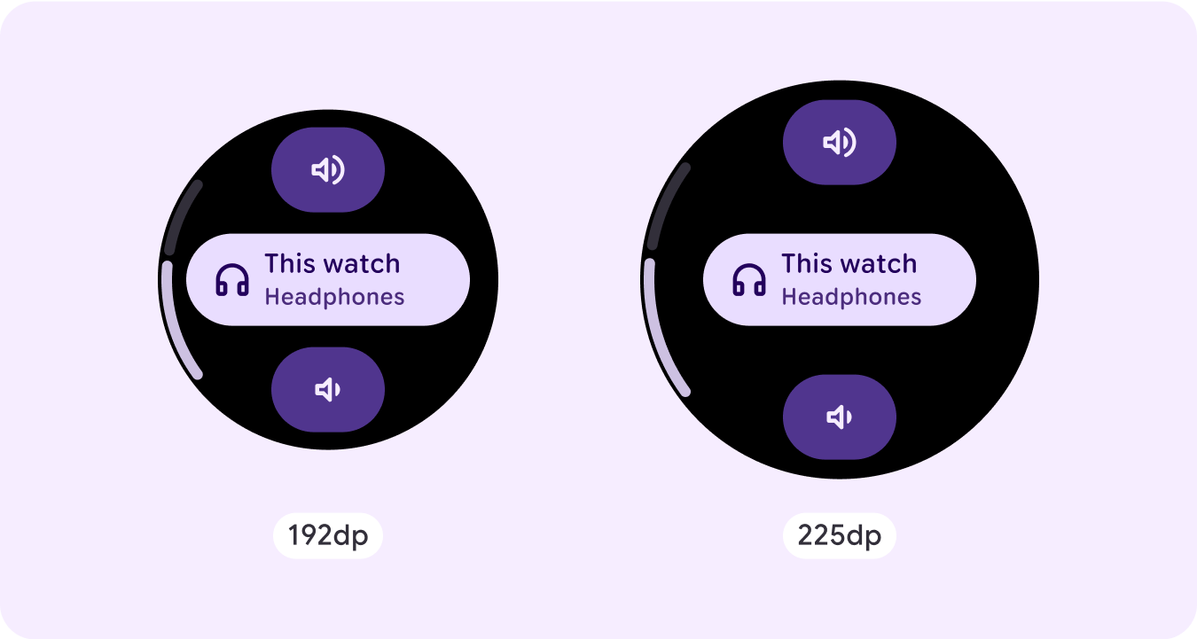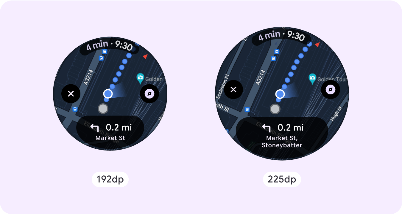You should be mindful of the limited space on a non-scrolling screen and the use of responsive (percentage) margins and padding to use the available screen space. You can also consider applying a breakpoint at 225dp to introduce additional content or make existing content more glanceable when on bigger screen sizes.