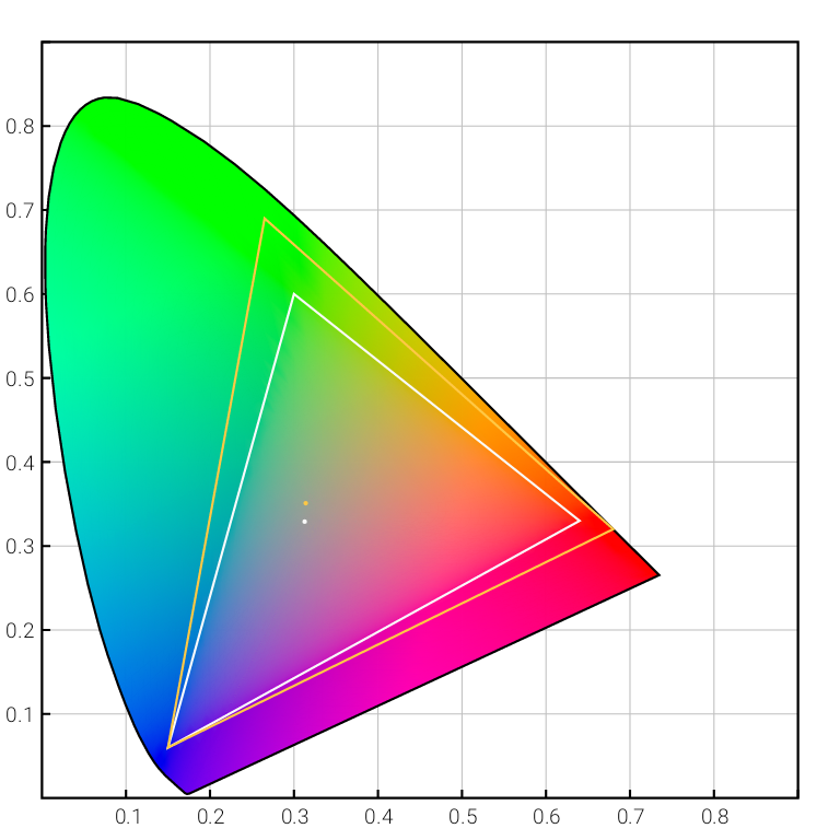 to the color gamut of sRGB using a CIE 1931 xy chromaticity diagram. This diagram