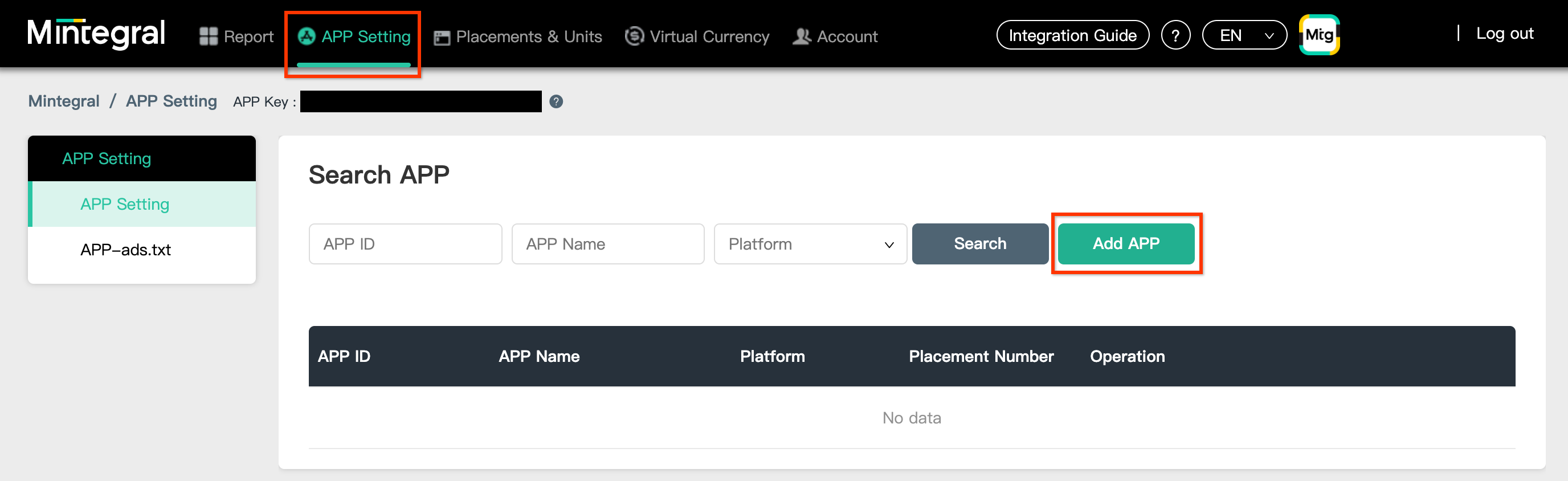 You will need your Mintegral Reporting API Key for setting up your AdMob ad unit ID. Navigate to Account > API Tools. Take note of your Skey and Secret.