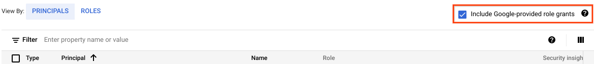 3. Optional: To view role grants for service agents, select the Include Google-provided role grants checkbox.