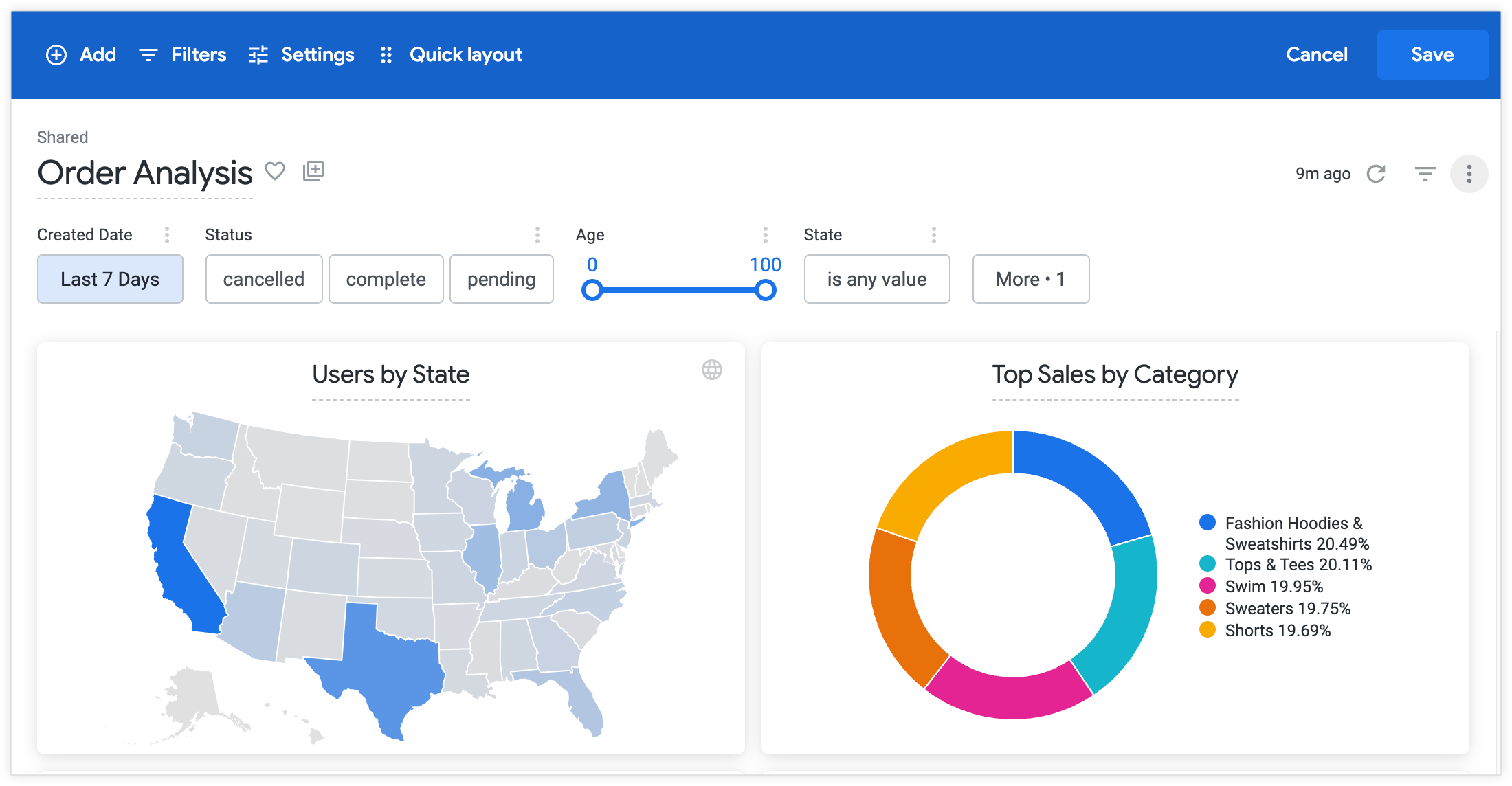 Looker creates a copy of the tile with the same query and visualization settings and adds the new tile to the bottom of the dashboard. From there, you can move or resize the tile, edit the tile title, or edit the new tile to adjust the visualization or the underlying query.