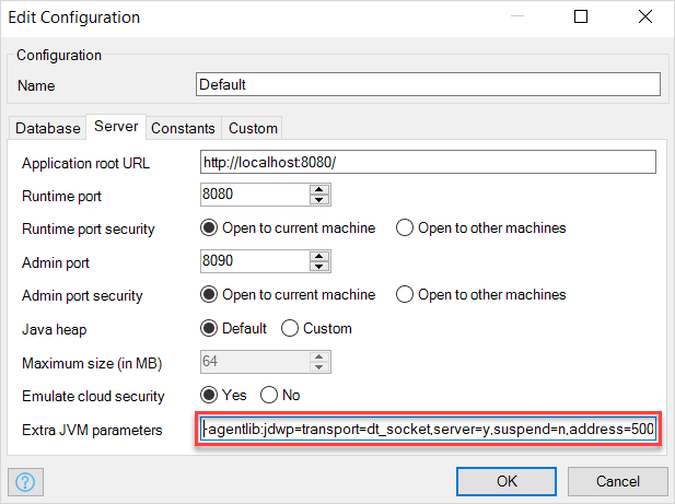 -agentlib:jdwp=transport=dt_socket,server=y,suspend=n,address=5005