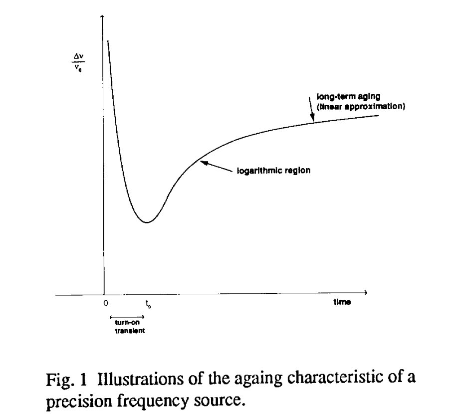 Crystal Oscillators (XO): The relatively low noise and high aging of a typical crystal oscillator generally results in a well-defined fit to an aging model. The aging is usually determined by such processes as stress relaxation and redistribution of contamination that decrease with time and are often described by a logarithmic model. Some units exhibit a change in sign of aging. This is because there is more than one source of aging of opposite signs.