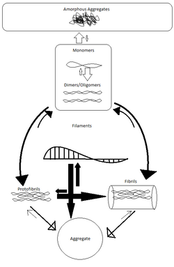 [edit | edit source]A buffer solution usually contains a weak acid and its conjugate base, but it can also contain a weak base and its conjugate acid. When H+ are added to a buffer, the weak acid's conjugate base will become protonated, thereby "absorbing" the H+ before the pH of the solution lowers significantly. Similarly, when OH- is added, the weak acid will become deprotonated to its conjugate base, thereby resisting any increase in pH before shifting to a new equilibrium point. In biological systems, buffers prevent the fluctuation of pH by processes that produce acid or base by-products to maintain an optimal pH.