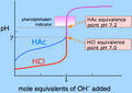 [edit | edit source]Buffers usually work well at a pH close to the pKa value of the acidic component. If too much acid is added to the buffer, or if the concentration is too strong, extra protons remain free and the pH will fall sharply. This is reflected in the titration curve and is known as the buffer capacity.