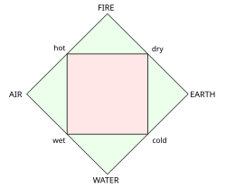 [edit]a ^ Here, the term "Earth" does not refer to planet Earth, known by modern science to be composed of a large number of chemical elements. Modern chemical elements are not conceptually similar to Aristotle's elements; the term "air", for instance, does not refer to breathable air.