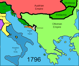 The term (coined in the early 20th century in the aftermath of the collapse of the Ottoman Empire) refers to the division of the Balkan peninsula, which was ruled almost entirely by the Ottoman Empire, into a number of smaller states between 1817 and 1912.[8] It came into common use[5] in the immediate aftermath of the First World War, with reference to the many new states that arose from the collapse of the Austro-Hungarian Empire and the Ottoman Empire.