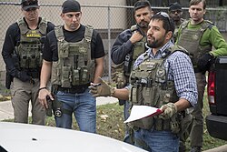 A bulletproof vest, also known as a ballistic vest or bullet-resistant vest, is a type of body armor designed to absorb impact and prevent the penetration of firearm projectiles and explosion fragments to the torso. The vest can be either soft—as worn by police officers, security personnel, prison guards, and occasionally private citizens to protect against stabbing attacks or light projectiles—or hard, incorporating metallic or para-aramid components.[1] Soldiers and police tactical units typically wear hard armour, either alone or combined with soft armour, to protect against rifle ammunition or fragmentation. Additional protection includes trauma plates for blunt force and ceramic inserts for high-caliber rounds. Bulletproof vests have evolved over centuries, from early designs like those made for knights and military leaders to modern-day versions. Early ballistic protection used materials like cotton and silk, while contemporary vests employ advanced fibers and ceramic plates.