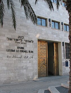 Bank Leumi (Hebrew: בנק לאומי, lit. National Bank; Arabic: بنك لئومي) is an Israeli bank. It was founded on February 27, 1902, in Jaffa as the Anglo-Palestine Company as subsidiary of the Jewish Colonial Trust (Jüdische Kolonialbank) Limited[3]: p.19 formed before in London by members of the Zionist movement to promote the industry, construction, agriculture, and infrastructure of the land hoped to ultimately become Israel. Today, Bank Leumi is Israel's largest bank (by total assets as of 2015), with overseas offices in Luxembourg,[4] US, Switzerland, the UK, Mexico, Uruguay, Romania, Jersey, and China.[5]