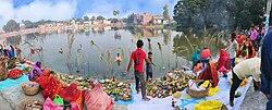 According to the 2023 census, 81.99% of Bihar's population practised Hinduism, while 17.70% followed Islam.[2] Christianity (0.05%), Buddhism (0.08%), and Sikhism (0.01%) are religious minorities in Bihar. Most of Bihar's population belongs to Indo-Aryan-speaking ethnic groups. It also attracted Punjabi Hindu refugees during the Partition of British India in 1947.[97]