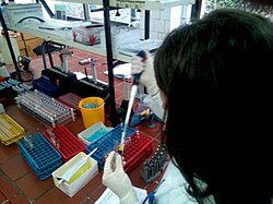 [edit]Biochemists are typically employed in the life sciences, where they work in the pharmaceutical or biotechnology industry in a research role. They are also employed in academic institutes, where in addition to pursuing their research, they may also be involved with teaching undergraduates, training graduate students, and collaborating with post-doctoral fellows.