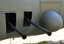 [edit]Contrary to the name, the Bofors 40 mm Automatic Gun L/60 has an actual barrel length of 56.25 calibres – 2,250 mm (7 ft 5 in). Due to this, the gun can at times be found under the designation L/56.[19] The L/60 calibre length – 2,400 mm (94 in) – refers to the length of the barrel and breech mounted as a unit.[20] The gun has also been cited with a caliber length of L/62 on occasion. This refers to the length of the barrel – 2,250 mm – when equipped with the conical flash hider – 250 mm (9.8 in); amounting to a length of 2,500 mm (8 ft 2 in), or 62.5 calibres.[21] Similarly, the shorter L/43 calibre length – 1,720 mm (5 ft 8 in) – refers to the length of the barrel and breech mounted as a unit.[21] The actual barrel length is 1,570 mm (5 ft 2 in) – 39.25 calibres.[21] With a flash hider or muzzle brake mounted the barrel length becomes 1,740 mm (5 ft 9 in)[21] or 1,760 mm (5 ft 9 in).[22]