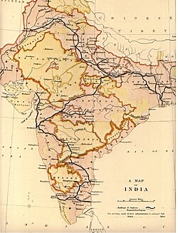 The 1909 map of Indian Railways, the fourth largest in the world. Railway construction began in 1853.
