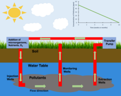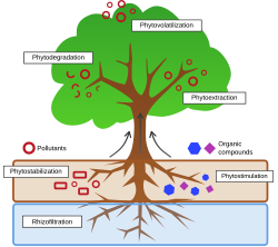 Innovative remediation techniques used at distressed brownfields in recent years include in situ thermal remediation, bioremediation and in situ oxidation. Often, these strategies are used in conjunction with each other or with other remedial strategies such as soil vapor extraction. In this process, vapor from the soil phase is extracted from soils and treated, which has the effect of removing contaminants from the soils and groundwater beneath a site. Binders can be added to contaminated soil to prevent chemical leaching.[42] Some brownfields with heavy metal contamination have even been cleaned up through an innovative approach called phytoremediation, which uses deep-rooted plants to soak up metals in soils into the plant structure as the plant grows. After they reach maturity, the plants – which now contain the heavy metal contaminants in their tissues – are removed and disposed of as hazardous waste.[citation needed]