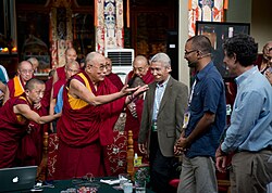 More recently, contemporary Tibetan Buddhists like the 14th Dalai Lama, B. Alan Wallace, and Robert Thurman have also argued for the compatibility of Buddhism and science.[67][68] According to Lopez, "the Fourteenth Dalai Lama of Tibet has been the most visible and influential Buddhist teacher to embrace the discourse of Buddhism and Science."[69] The Dalai Lama is known for his interest in science and has written a book on the relationship between science and Buddhism, The Universe in a Single Atom (2005), where he discusses various topics, including physics and evolution.[70] The Dalai Lama argues that science and Buddhism share the same commitment "to keep searching for reality by empirical means and to be willing to discard accepted or long-held positions if our search finds that the truth is different."[71]