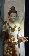 In the time of the rulers of the Kushan Empire, Buddhism in large scale penetrated into Bactria and Gandhara.[3][4] According to a legend written in Pali two merchants from Bactria, Trapusa and Bahalika, hit the road to meet with the Buddha and became his disciples.[5] Later, they returned to Bactria and built temples in honor of the Buddha.[6][7]