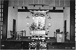 [edit]The Buddhist Churches of America and the Honpa Hongwanji Mission of Hawaii are immigrant Buddhist organizations in the United States. The BCA is an affiliate of Japan's Nishi Hongwanji, a sect of Jōdo Shinshū, which is, in turn, a form of Pure Land Buddhism. Tracing its roots to the Young Men's Buddhist Association founded in San Francisco at the end of the 19th century and the Buddhist Mission of North America founded in 1899,[17] it took its current form in 1944. All of the Buddhist Mission's leadership, along with almost the entire Japanese American population, had been interned during World War II. The name Buddhist Churches of America was adopted at Topaz War Relocation Center in Utah; the word "church" was used in analogy to a Christian house of worship. After internment ended, some members returned to the West Coast and revitalized churches there, while a number of others moved to the Midwest and built new churches. During the 1960s and 1970s, the BCA was in a growth phase and was very successful at fund-raising. It also published two periodicals, one in Japanese and one in English. However, since 1980, BCA membership declined. The 36 temples in the state of Hawaii of the Honpa Hongwanji Mission have a similar history.