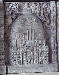 The Caitikas are said to have had in their possession the Great Stupa at Sanchi.[6] The Great Stūpa was first commissioned by Asoka in the 3rd century BCE and became known as a Buddhist pilgrimage site. In the Ajaṇṭā Caves, the only epigraphic reference to an early Buddhist sect is to that of the Caitikas, which is associated with an iconic image in Cave 10.[7] The Mahāsāṃghikas were generally associated with the early veneration of anthropomorphic Buddha images.[7]