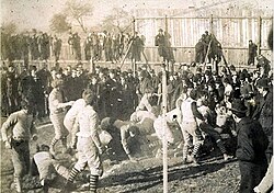 [edit]The first college football game in Oklahoma Territory occurred on November 7, 1895, when the "Oklahoma City Terrors" defeated the Oklahoma Sooners 34 to 0. The Terrors were a mix of Methodist college and high school students.[64] The Sooners did not manage a single first down. By next season, Oklahoma coach John A. Harts had left to prospect for gold in the Arctic.[65][66] Organized football was first played in the territory on November 29, 1894, between the Oklahoma City Terrors and Oklahoma City High School. The high school won 24 to 0.[65]
