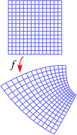 The conformal property may be described in terms of the Jacobian derivative matrix of a coordinate transformation. The transformation is conformal whenever the Jacobian at each point is a positive scalar times a rotation matrix (orthogonal with determinant one). Some authors define conformality to include orientation-reversing mappings whose Jacobians can be written as any scalar times any orthogonal matrix.[3]