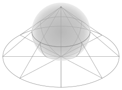 We can establish a one-to-one correspondence between the points on the surface of the sphere minus the north pole and the points in the complex plane as follows. Given a point in the plane, draw a straight line connecting it with the north pole on the sphere. That line will intersect the surface of the sphere in exactly one other point. The point z = 0 will be projected onto the south pole of the sphere. Since the interior of the unit circle lies inside the sphere, that entire region (|z| < 1) will be mapped onto the southern hemisphere. The unit circle itself (|z| = 1) will be mapped onto the equator, and the exterior of the unit circle (|z| > 1) will be mapped onto the northern hemisphere, minus the north pole. Clearly this procedure is reversible – given any point on the surface of the sphere that is not the north pole, we can draw a straight line connecting that point to the north pole and intersecting the flat plane in exactly one point.