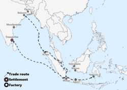 Denmark maintained a scattering of small colonies and trading posts throughout the Indian sub-continent from the 17th to 19th centuries, after which most were sold or ceded to Britain which had become the dominant power there.[3] The most important economic aspect was spice trade and access to the east Asian area, including Imperial China situated farther to the east.