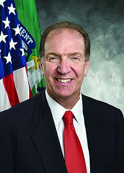 David Robert Malpass (born March 8, 1956[1]) is an American economic analyst and former government official who served as President of the World Bank Group from 2019 to 2023. He previously served as Under Secretary of the Treasury for International Affairs under Donald Trump, having served as an economic advisor to Trump during the 2016 U.S. presidential election; Deputy Assistant Treasury Secretary under Ronald Reagan; and Deputy Assistant Secretary of State under George H. W. Bush. He was chief international economist at Bear Stearns from 1993 to 2002, and chief economist from 2002 to the firm's collapse in 2008.
