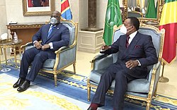 A major measles outbreak in the country left nearly 5,000 dead in 2019.[101] The Ebola outbreak ended in June 2020, after causing 2,280 deaths over 2 years.[102] The COVID-19 pandemic also reached the DRC in March 2020, with a vaccination campaign beginning on 19 April 2021.[103][104] The Italian ambassador to the DRC, Luca Attanasio, and his bodyguard were killed in North Kivu on 22 February 2021.[105] On 22 April 2021, meetings between Kenyan President Uhuru Kenyatta and Tshisekedi resulted in new agreements increasing international trade and security (counterterrorism, immigration, cyber security, and customs) between the two countries.[106] In February 2022, allegations of a coup d'état in the country led to uncertainty,[107] but the coup attempt failed.[108] In December 2023, President Felix Tshisekedi won reelection with more than 70% of the vote.[109]