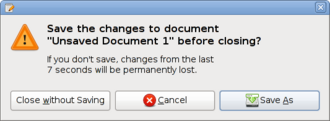 The simplest type of dialog box is the alert, which displays a message and may require an acknowledgment that the message has been read, usually by clicking "OK", or a decision as to whether or not an action should proceed, by clicking "OK" or "Cancel". Alerts are also used to display a "termination notice"—sometimes requesting confirmation that the notice has been read—in the event of either an intentional closing or unintentional closing ("crash") of an application or the operating system. (E.g., "Gedit has encountered an error and must close.") Although this is a frequent interaction pattern for modal dialogs, it is also criticized by usability experts as being ineffective for its intended use, which is to protect against errors caused by destructive actions,[3] and for which better alternatives exist.[4]