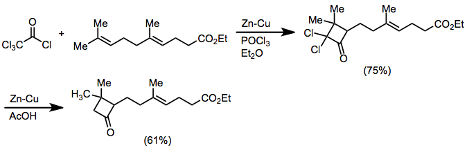 Ketene cycloadditions can be difficult to control; dichloroketene is typically used instead, followed by dehalogenation with zinc-copper couple.[28]