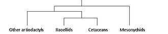 - ^ Geisler, J. H; Uhen, M. D. (2005). "Phylogenetic relationships of extinct Cetartiodactyls: results of simultaneous analyses of molecular, morphological, and stratigraphic data". Journal of Mammalian Evolution. 12: 145–160.