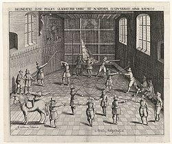The mechanics of modern fencing originated in the 18th century in an Italian school of fencing of the Renaissance, and under their influence, were improved by the French school of fencing.[12][13] The Spanish school of fencing stagnated and was replaced by the Italian and French schools.