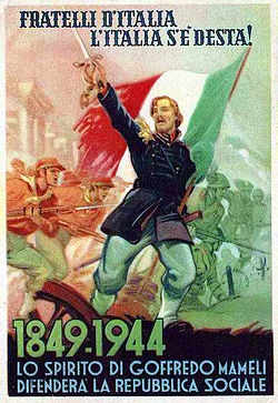 These verses, which can be read in the second verse, recall the hope that Italy, still divided into the pre-unification states, would be united in a single nation, gathering under a single flag.[62] Starting from this period the strawberry tree plant began to be considered a national symbol of Italy due to the green leaves, white flowers and red berries, which recall the colours of the Italian flag.[63] The strawberry tree is the national tree of Italy.[63]
