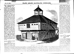 The fort was named for Brevet Colonel Abraham Charles Myers, quartermaster for the Army's Department of Florida and future son-in-law of Major Twiggs.[16] It covered about 139 acres (56 ha), and soon had 57 buildings, including a two-story blockhouse that was pictured in Frank Leslie's Illustrated Newspaper, and a 1,000-foot-long (300 m) wharf at which ships could dock. Irvin Solomon notes that Fort Myers was described "as 'one of the finest and largest' forts of the Seminole Wars". It was abandoned in 1858, at the end of the Third Seminole War.[17]