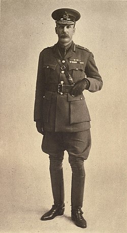 [edit]In World War I, Maude first served in France. He was a staff officer with III Corps when, in October 1914, he was promoted to the temporary rank of brigadier general and given command of the 14th Infantry Brigade, part of the 5th Division, in place of Brigadier General Stuart Peter Rolt.[19] He was made a Companion of the Order of the Bath in February 1915[20] and was wounded in April and returned home to recover.