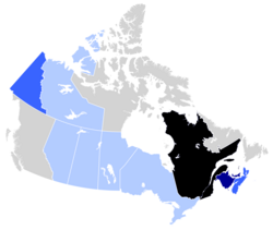 | Canada: majority in Quebec, large minority in New Brunswick, small minorities in Northern Ontario, Eastern Ontario, Nova Scotia, Prince Edward Island, Alberta and Manitoba. United States: small French Canadian American minorities in New England, New York, Michigan and Louisiana. |