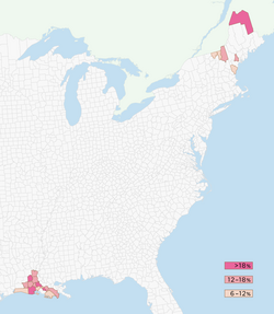 According to the United States Census Bureau (2011), French is the fourth[135] most spoken language in the United States after English, Spanish, and Chinese, when all forms of French are considered together and all dialects of Chinese are similarly combined. French is the second-most spoken language (after English) in the states of Maine and Vermont. In Louisiana, it is tied with Spanish for second-most spoken if Louisiana French and all creoles such as Haitian are included. French is the third most spoken language (after English and Spanish) in the states of Connecticut, Rhode Island, and New Hampshire.[136] Louisiana is home to many distinct French dialects, collectively known as Louisiana French. New England French, essentially a variant of Canadian French, is spoken in parts of New England. Missouri French was historically spoken in Missouri and Illinois (formerly known as Upper Louisiana), but is nearly extinct today.[137] French also survived in isolated pockets along the Gulf Coast of what was previously French Lower Louisiana, such as Mon Louis Island, Alabama and DeLisle, Mississippi (the latter only being discovered by linguists in the 1990s) but these varieties are severely endangered or presumed extinct.