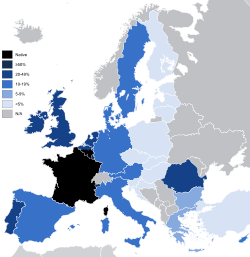 Spoken by 19.71% of the European Union's population, French is the third most widely spoken language in the EU, after English and German and the second-most-widely taught language after English.[9][87]