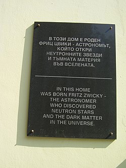 - ^ Ivanova, Natasha (2008), "110th anniversary of the astrophysicist Fritz Zwicky", Bulgarian Astronomical Journal (in Bulgarian), 10: 135, Bibcode:2008BlgAJ..10..135I