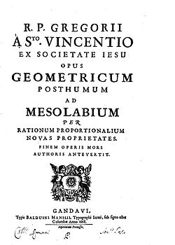 [edit]- ^ a b Meskens, Ad J. (2021) Between Tradition and Innovation: Gregorio a San Vincente and the Flemish Jesuit mathematics school, page 98, Brill Publishers ISBN 978-90-04-44790-5
