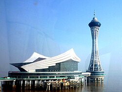 The Bay is known for hosting the world's largest tidal bore, up to 9 meters (30 feet) high, and traveling up to 40 km (25 mi) per hour. Yanguan Town Tide-Viewing Park (盐官镇观潮胜地公园 Yánguān Zhèn Guāncháo Shèngdì Gōngyuán), on the north shore of Hangzhou Bay some 50 km east of the city of Hangzhou, is regarded as one of the best place to watch the Qiantang River Tidal Bore, especially on the 18th day of the eighth lunar month.[1][2]
