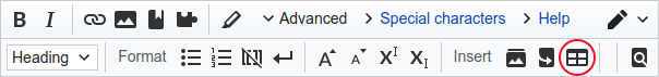 [edit]Tables can be added to articles and other pages using either standard HTML table elements, or with special wikicode markup developed just to facilitate creating tables without a knowledge of HTML.