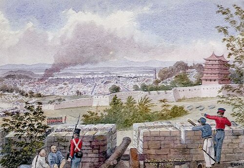China restricted outside trade under the Canton System to only one port and refused all official diplomatic relations except to tributary countries. In 1833–1835, as London ended the East India Company's monopoly on trade with China, both Tory and Whig governments sought to maintain peace and good trade relations. However Lord Napier wanted to provoke a revolution in China that would open trade. The Foreign Office, led by Palmerston, stood opposed and sought peace.[61] The Chinese government refused to change, and interdicted the British smugglers bringing in opium from India, which was banned in China. Britain responded with military force in the First Opium War, 1839–1842, which ended in a decisive British victory. Under the Treaty of Nanjing, China paid an indemnity and opened five treaty ports to world trade. In those ports there would be extraterritorial rights for British citizens. Palmerston thus achieved his main goals of diplomatic equality and opening China to trade. However his angry critics focused on the immorality of the opium trade.[62]