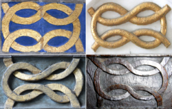 A heraldic knot (referred to in heraldry as simply a knot) is a knot, unknot, or design incorporating a knot used in European heraldry.[1] While a given knot can be used on more than one family's achievement of arms, the family on whose coat the knot originated usually gives its name to the said knot (the exception being the Tristram knot). These knots can be used to charge shields and crests, but can also be used in badges or as standalone symbols of the families for whom they are named (like Scottish plaids). The simplest of these patterns, the Bowen knot, is often referred to as the heraldic knot in symbolism and art outside of heraldry.