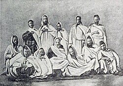 [edit]In the 18th century, in the period between the Saadi and 'Alawi dynasties, the Jewish community of Oufrane, which predated Islam in Morocco and spoke Tamazight and Arabic, came into contact with a "mad sorcerer" seeking the support of Yazid.[51] Oral tradition tells how this "sorcerer," along with armed bandits who had been marauding through the Sous valley, forced a group of 60 Jews at a sūq to either convert or die.[51] The local population was able to save ten of them, and the other fifty decided to all enter a fire rather than have any one of them convert. The site became revered as a holy place by both Jews and Muslims.[51]